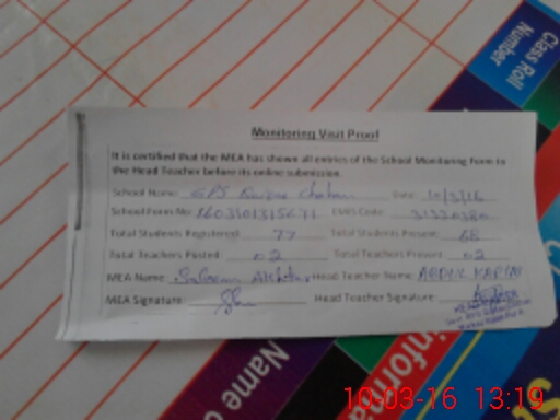 | Attendance Register | Head Teacher | MEA with School | Visit Proof |