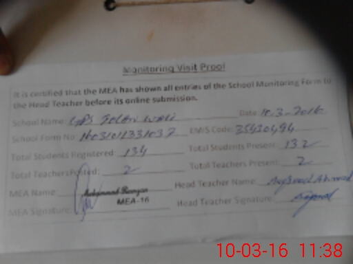 | EMIS Code: 35430494 | Name of School: GPS TOOLAN WALI | |||