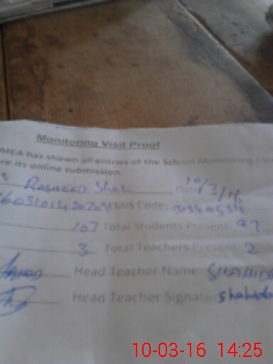 | Attendance Register | Head Teacher | MEA with School | Visit Proof |