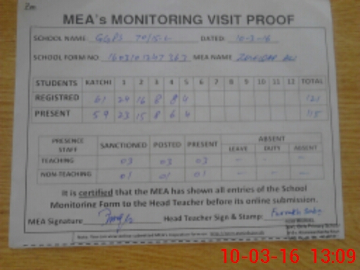 | Attendance Register | Head Teacher | MEA with School | Visit Proof |