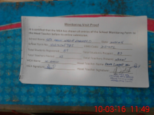 | Monitoring Date: 10-03-2016 | Start Time: 10-03-2016 11:05 AM | End Time: 10-03-2016 11:50 AM | Name of MEA: Mu**** am**** Ak**** | |