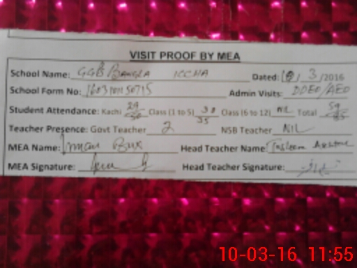 | EMIS Code: 32430195 | Name of School: GGPS BANGLA ICHHA | |||