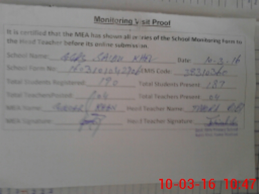 | Certified that this School was Inspected by the Undersigned MEA/DMO Today and the Information Stated Above is as Per Record. | |||||