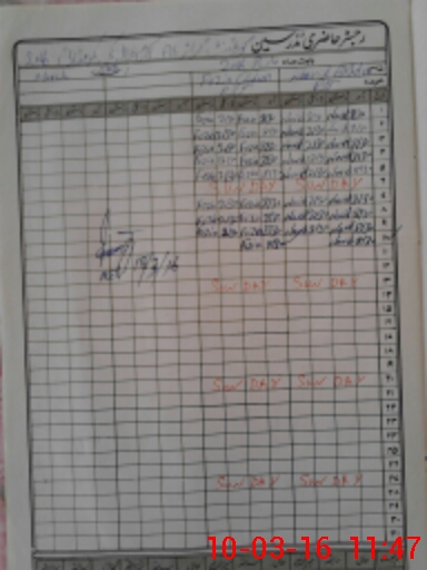 | CNIC | Full Name | Designation | R/C | Absence During Last Calender Month |
