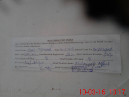| Name: Im**** Ah**** Designation: (School Headmaster's/Headmistress's) Snr H/M Phone/Cell Number: 03**** |