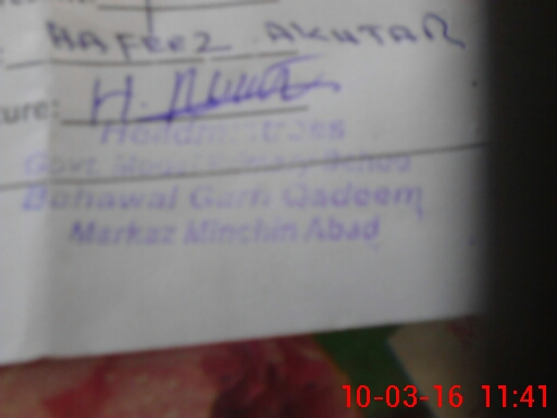| Name: RE**** PA**** Designation: (School Headmaster's/Headmistress's) PST Phone/Cell Number: 03**** |