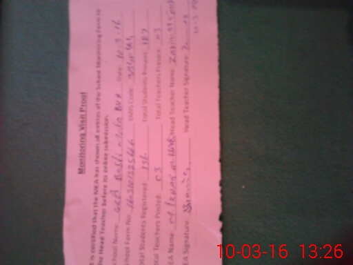| Monitoring Date: 10-03-2016 | Start Time: 10-03-2016 01:08 PM | End Time: 10-03-2016 01:28 PM | Name of MEA: Mu**** Iz**** UlHa**** | |