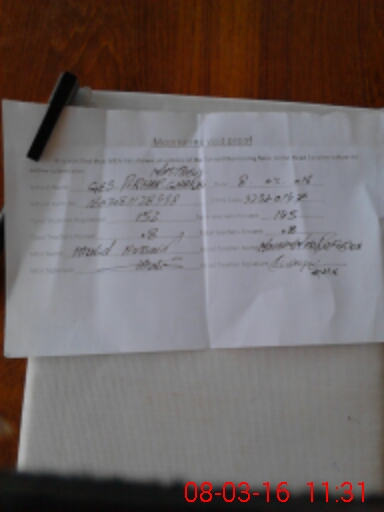 | Monitoring Date: 08-03-2016 | Start Time: 08-03-2016 10:59 AM | End Time: 08-03-2016 11:36 AM | Name of MEA: Kh**** Hu**** | |