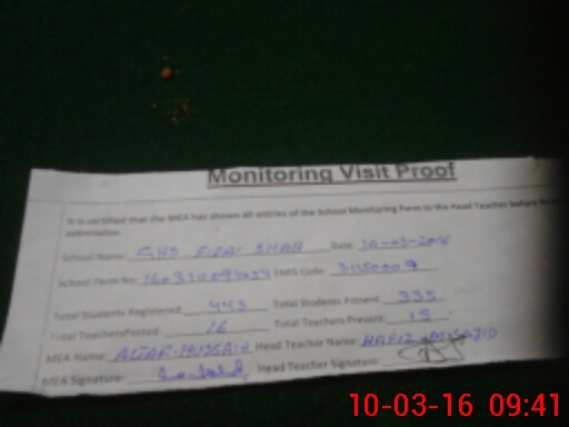 | EMIS Code: 31150009 | Name of School: GHS FIDAI SHAH | |||