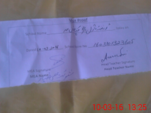 | School Visited by School Health & Nutrition Supervisor (No. of Visits) | 1 | Name1: | IFTKHAR HUSSAIN | Name2: | |