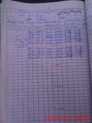 | CNIC | Full Name | Designation | R/C | Absence During Last Calender Month |
