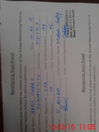 | Certified that this School was Inspected by the Undersigned MEA/DMO Today and the Information Stated Above is as Per Record. | |||||