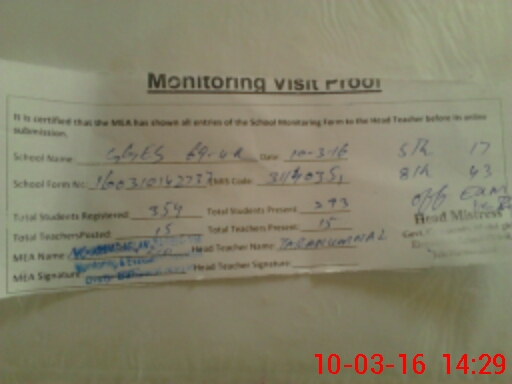 | Attendance Register | Head Teacher | MEA with School | Visit Proof |