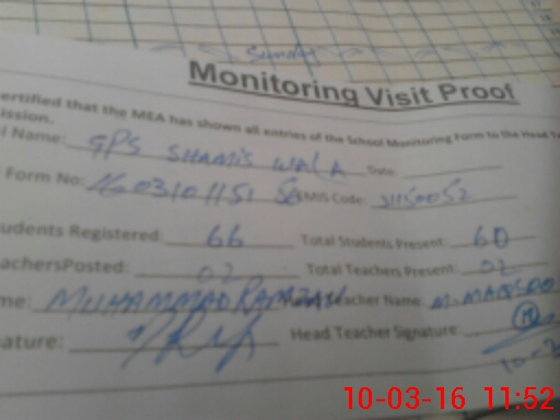| EMIS Code: 31150052 | Name of School: GPS SHAMAS WALA | |||