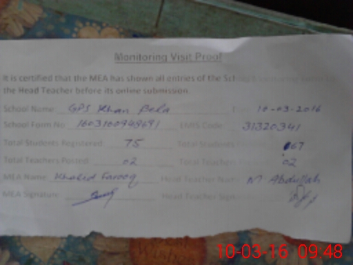 | EMIS Code: 31320341 | Name of School: GPS KHAN BELLA | |||