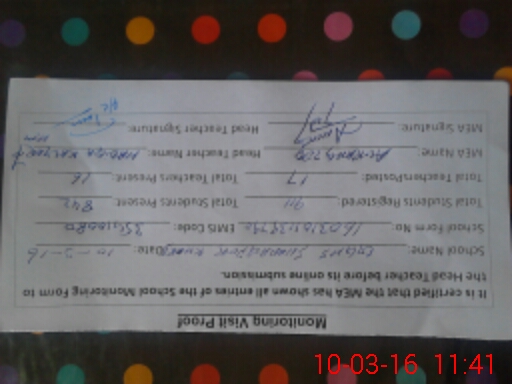 | Certified that this School was Inspected by the Undersigned MEA/DMO Today and the Information Stated Above is as Per Record. | |||||