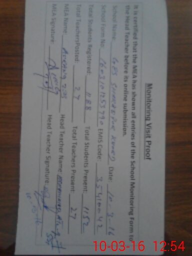 | Certified that this School was Inspected by the Undersigned MEA/DMO Today and the Information Stated Above is as Per Record. | |||||