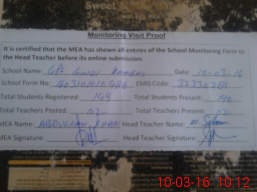 | EMIS Code: 32330281 | Name of School: GPS GINDI KHAKHI | |||