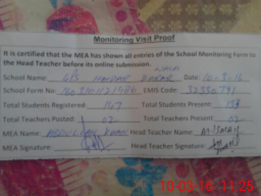 | EMIS Code: 32330791 | Name of School: GPS HAIDER KARAR WALA | |||