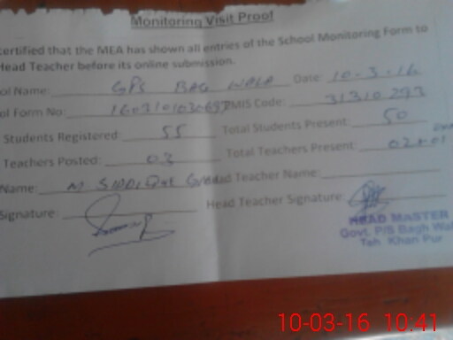 | EMIS Code: 31310293 | Name of School: GPS BAGH WALA | |||