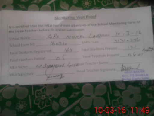 | Certified that this School was Inspected by the Undersigned MEA/DMO Today and the Information Stated Above is as Per Record. | |||||