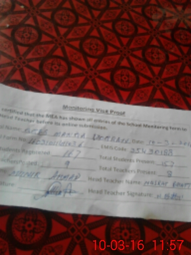 | Certified that this School was Inspected by the Undersigned MEA/DMO Today and the Information Stated Above is as Per Record. | |||||
