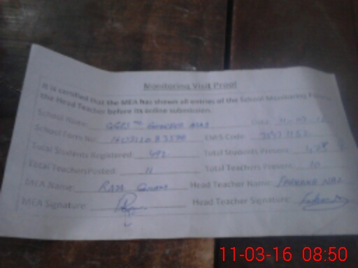 | Attendance Register | Head Teacher | MEA with School | Visit Proof |