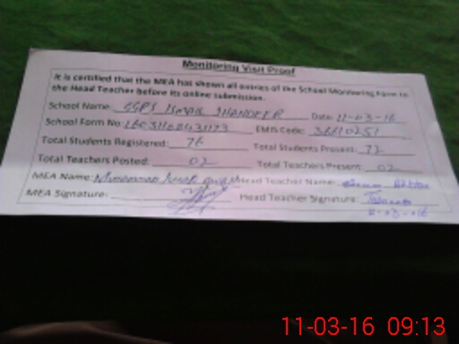| Certified that this School was Inspected by the Undersigned MEA/DMO Today and the Information Stated Above is as Per Record. | |||||