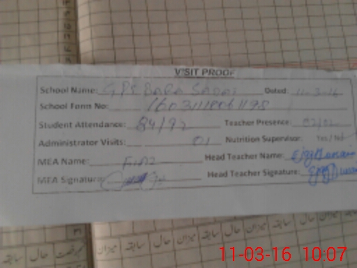 | EMIS Code: 32330649 | Name of School: GPS BARA SADAT | |||