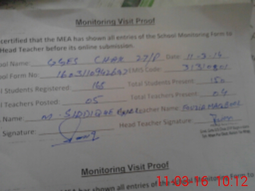 | Certified that this School was Inspected by the Undersigned MEA/DMO Today and the Information Stated Above is as Per Record. | |||||