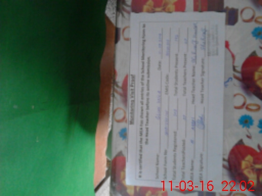 | School Visited by School Health & Nutrition Supervisor (No. of Visits) | 1 | Name1: | REHANA SHARIF | Name2: | NIL |