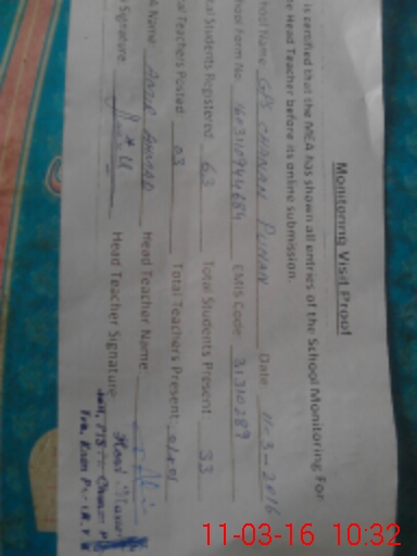 | EMIS Code: 31310289 | Name of School: GPS CHANAN PUNANN | |||