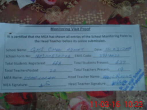 | EMIS Code: 39210022 | Name of School: GHS CHAK AZMAT | |||