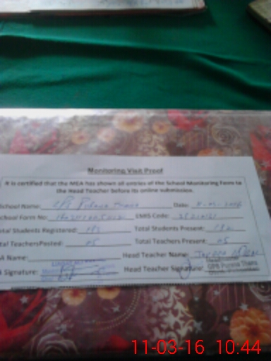 | Certified that this School was Inspected by the Undersigned MEA/DMO Today and the Information Stated Above is as Per Record. | |||||