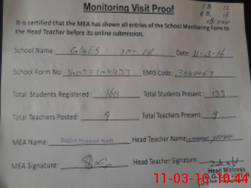 | Attendance Register | Head Teacher | MEA with School | Visit Proof |