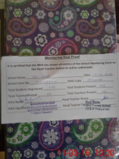 | Attendance Register | Head Teacher | MEA with School | Visit Proof |