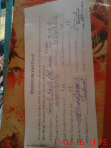 | EMIS Code: 31330922 | Name of School: GPS BASTI PIR JAMAN SULTAN | |||