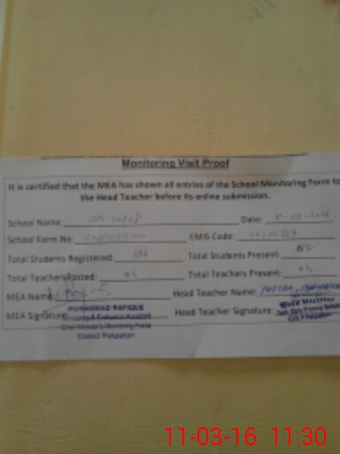 | Certified that this School was Inspected by the Undersigned MEA/DMO Today and the Information Stated Above is as Per Record. | |||||