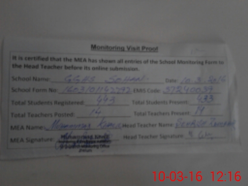 | EMIS Code: 37240039 | Name of School: GGHS SOHAN | |||