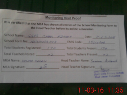 | Certified that this School was Inspected by the Undersigned MEA/DMO Today and the Information Stated Above is as Per Record. | |||||