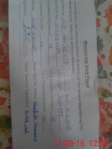 | Certified that this School was Inspected by the Undersigned MEA/DMO Today and the Information Stated Above is as Per Record. | |||||