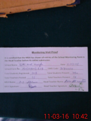 | Attendance Register | Head Teacher | MEA with School | Visit Proof |