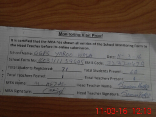 | EMIS Code: 32320478 | Name of School: GGPS YAROO WALA | |||