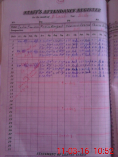 | 31**** | Sa**** Pe**** | S.S.T.(GENERAL) | 0 | 0 | 0 | 0 | 0 | 0 | 0 | 0 | 0 | Exam Duty | |