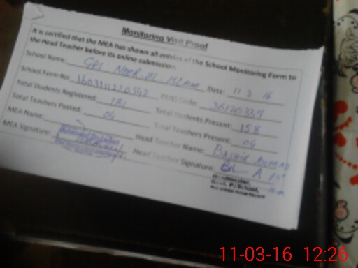 | EMIS Code: 36120339 | Name of School: GPS NOOR-UL-ISLAM | |||