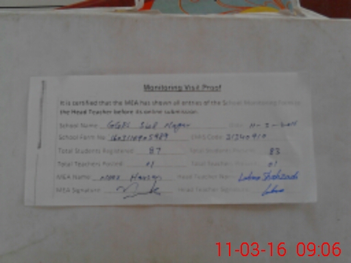 | Attendance Register | Head Teacher | MEA with School | Visit Proof |