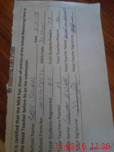 | Attendance Register | Head Teacher | MEA with School | Visit Proof |