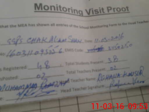| EMIS Code: 31150250 | Name of School: GGPS CHAK ALAM SHAH | |||