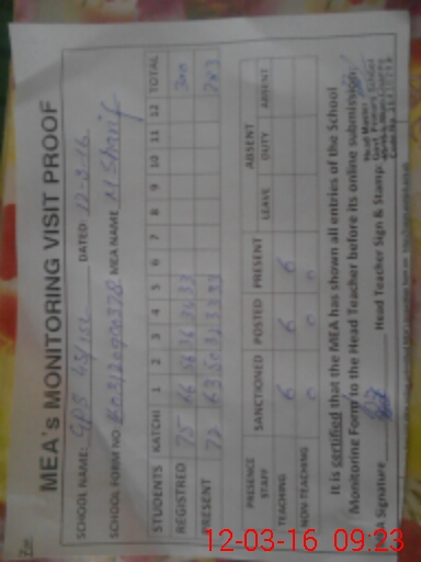 | Attendance Register | Head Teacher | MEA with School | Visit Proof |