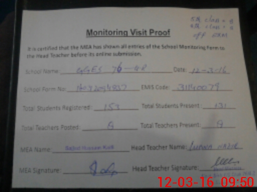 | EMIS Code: 31140079 | Name of School: GGES 76/4-R HAROON ABAD | |||